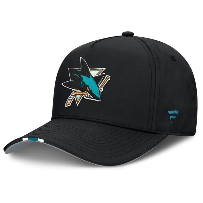 Kšiltovka s logem NHL týmu San Jose Sharks. Šestipanelová kšiltovka s prohnutým prošitým kšiltem a šesti obšitými větracími otvory je vzadu vybavena plastovým páskem na úpravu velikosti. Na čele zdobí kšiltovku výrazné logo týmu. na levé straně nášivka s logem Fanatics, vzadu logo NHL a na pravé straně týmový motiv.